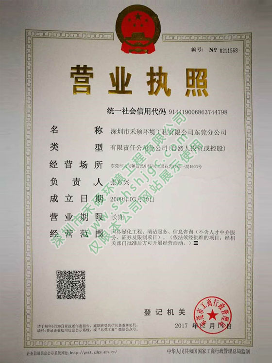 深圳市禾碩環(huán)境工程有限公司東莞分公司 東莞市大朗鎮(zhèn)富民中路明上居花園11棟一層1603號 0769-82814958 13825258921 張東興